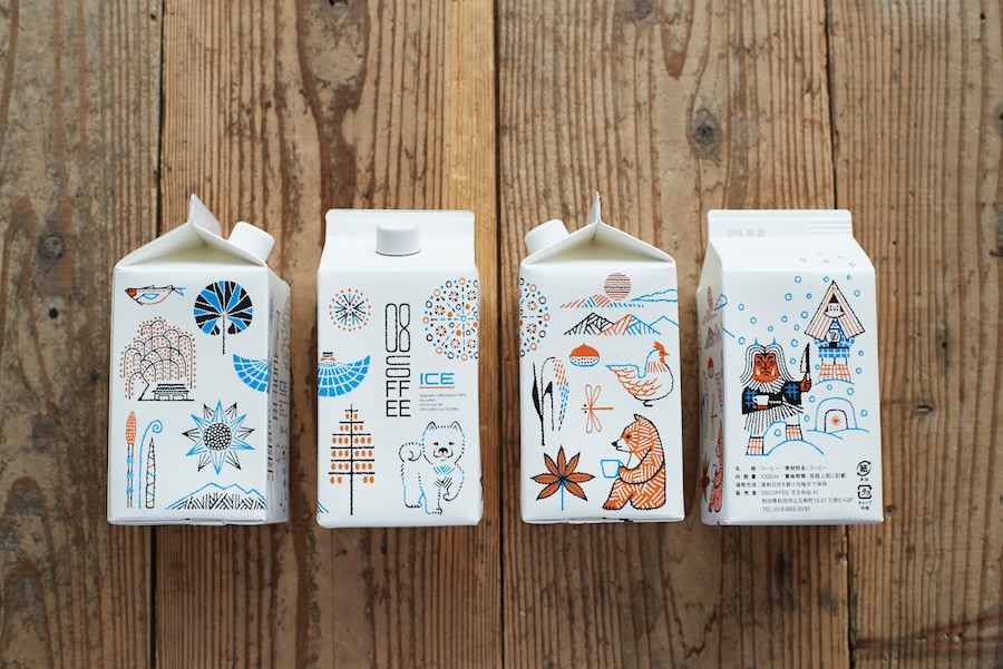 But it was his love for his hometown of Akita that led him to a collaboration with illustrator Toshiyuki Fukuda. Together, they created sets of packaged ice coffee featuring various homages to Akita, which are available in mini and large sizes.