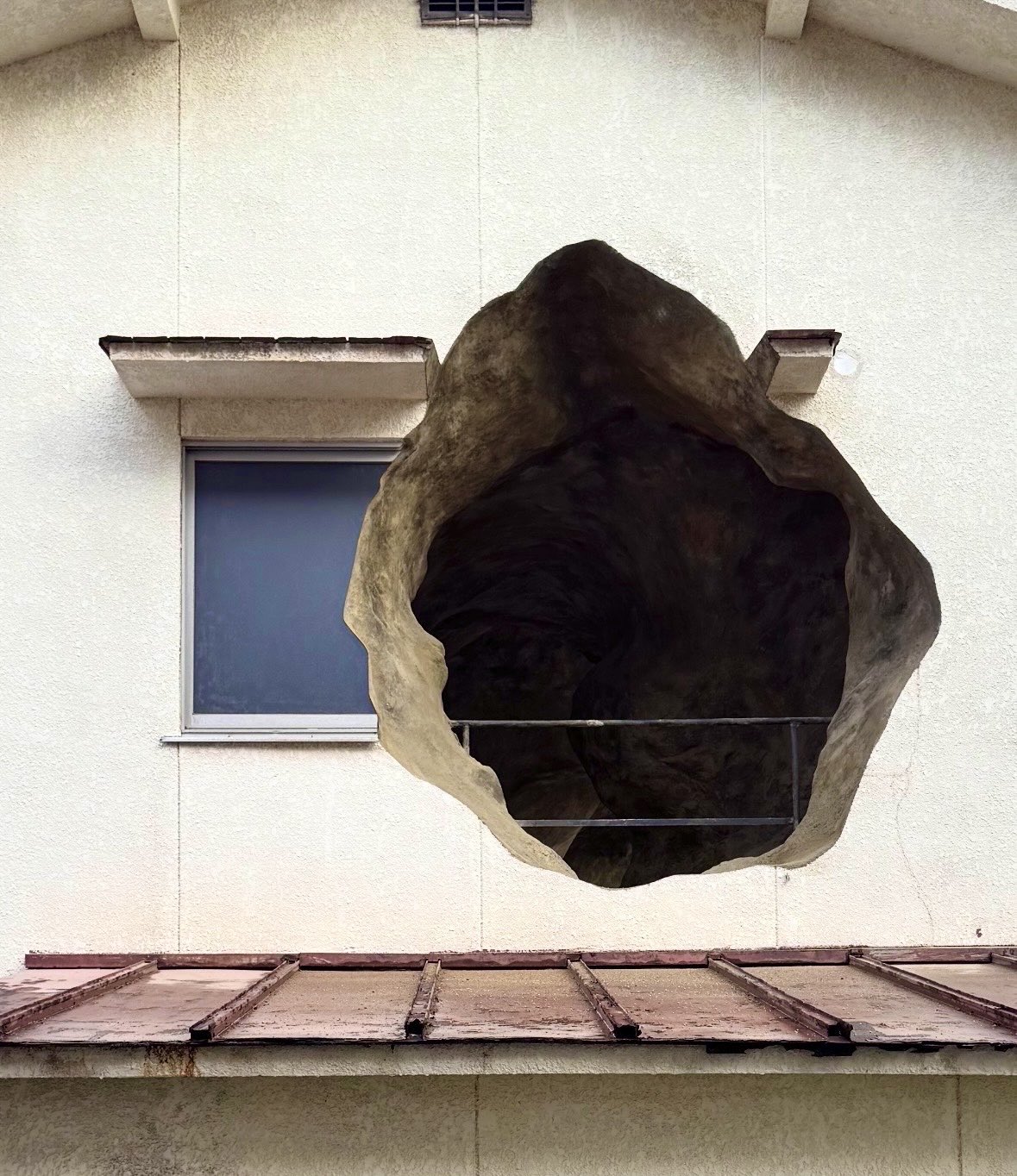 Their latest installation, revealed in December 2025, is a home with two gigantic holes carved into the sides as if an ogre was crafting with an exacto knife. Peering into the holes, one immediately notices that, instead of walls and furniture, the interior has been transformed into a cavernous underworld. Titled “space II” the installation is the 2nd in a series altering everyday homes in Japan. The first was in 2020 when the collective inserted a white cubic gallery space into the 2nd floor of a home in northern Japan.