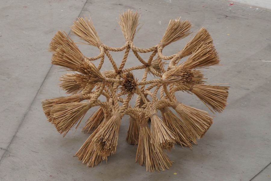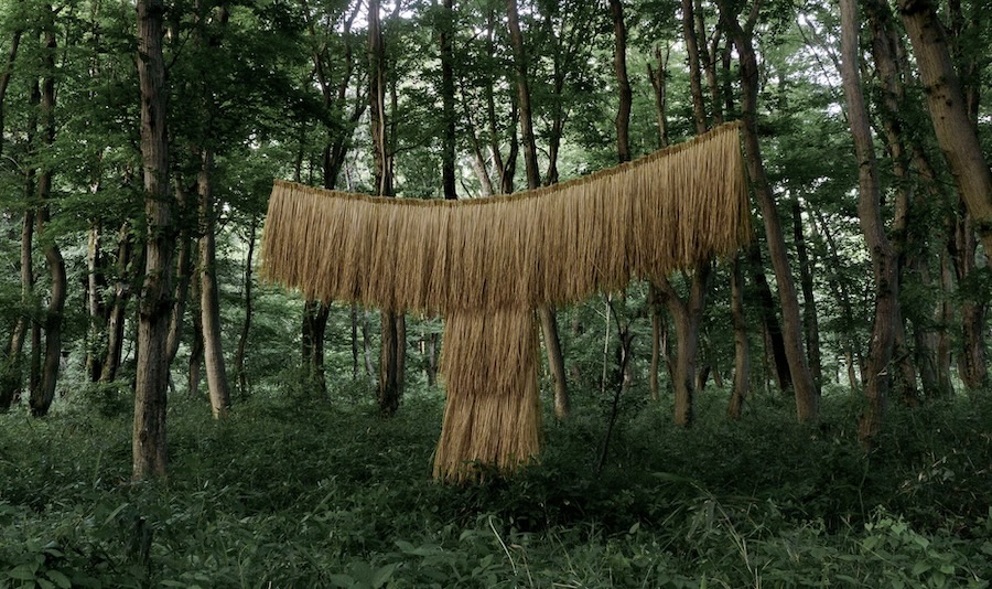 Design duo Straft (a combination of the words straw and craft) presented tori, a birdlike structure made from rice straw, along with chairs, clothing and other objects. Rice straw, a byproduct of rice production, is often used in traditional Japanese religious rituals. Straft’s objects express a spiritual relationship with nature developed through farming.