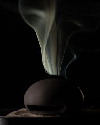 Artist Baku Ochi presented “Endo” (煙道; literally ‘path of smoke’) an art form that invited visitors to gaze dreamily at incense smoke drifting in the darkness of night. The infinitely simple installation consisted of just smoke, a vessel, and a dark space. As the incense burns, the graceful, unpredictable movement of the smoke captivates, allowing time and daily distractions to fade.