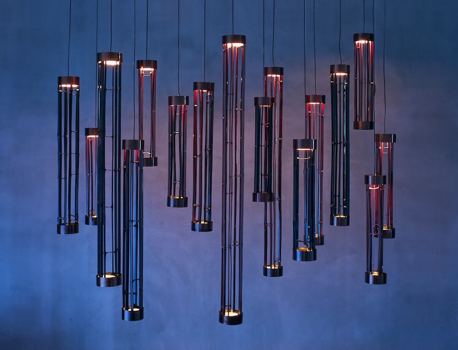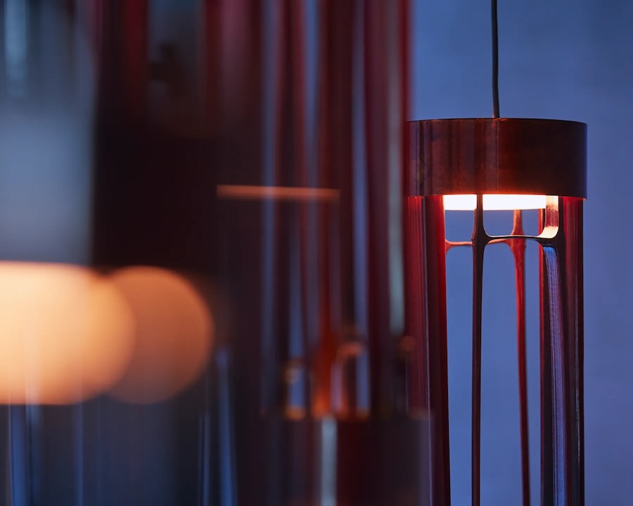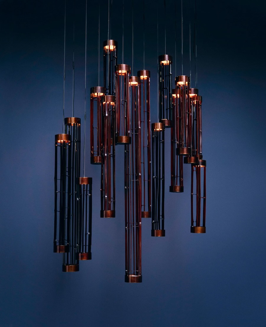 In an exhibition titled “Radiance of Nature with Urushi,” up-and-coming designer Yu Watanabe presented a forest of hanging pendant lamps made from urushi lacquer. Despite being sustainable and biodegradable, the use of urushi has been in chronic decline due to the emergence of cheaper materials. The project aims to revitalise the craft while exploring qualities of urushi that reflects glimmering light reminiscent of light shining through tree branches in nature.