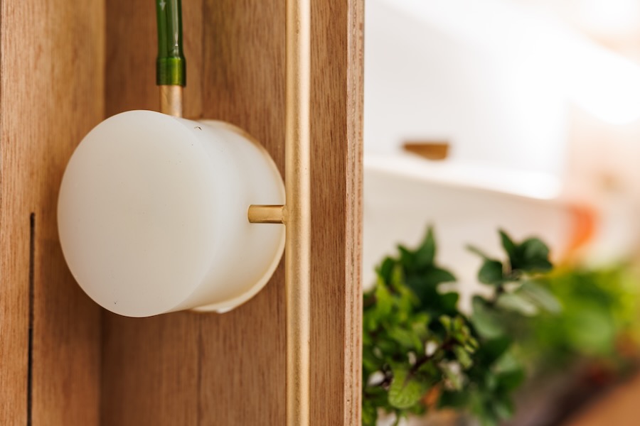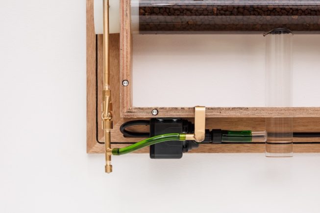 “Gaku-poni is not just an aquaponics system but a piece of furniture designed to visually enjoy the symbiosis of plants, fish, and microorganisms,” says the architect, who adds that he hopes his creation will help familiarize people with aquaponics.