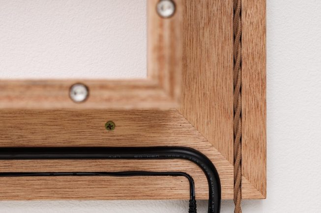 each power cord is inserted into and secured by the grooves carved into the frame