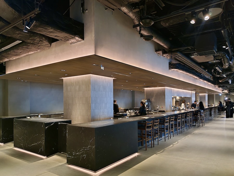 Equally important is the setting. A sweeping marble counter and open kitchen place diners in direct view of the cooking process, emphasizing both technique and theater. In contrast to the utilitarian counters of legacy chains, Kikiya’s interior is designed to slow the experience down.