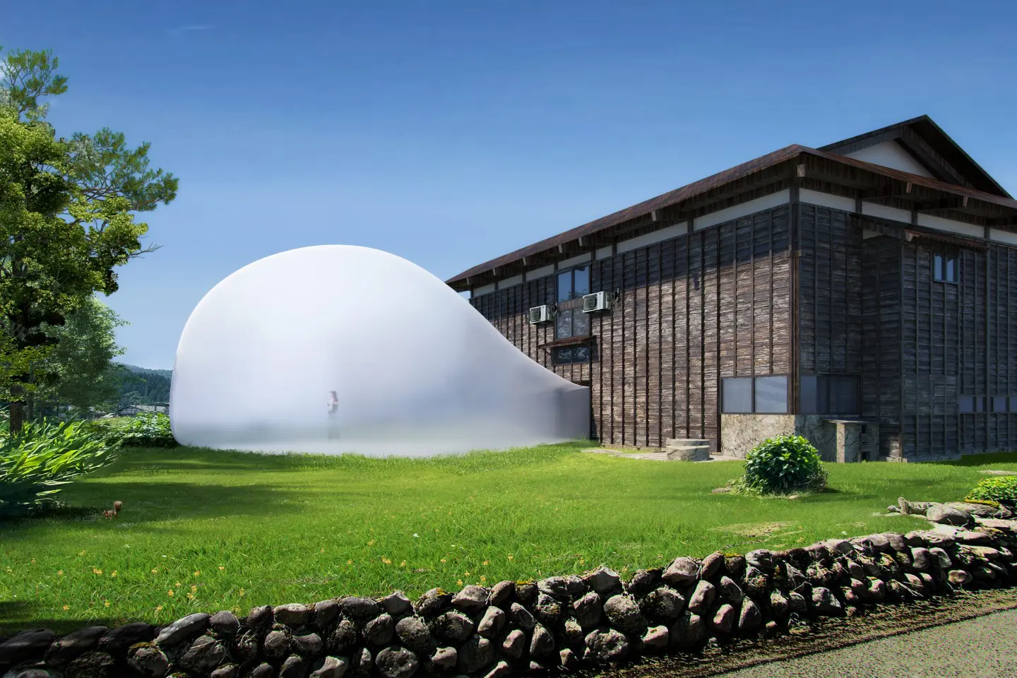 Amidst a picturesque backdrop of traditional houses nestled in nature, an unexpected sight unfolds: a colossal “bubble” emerges from within the venue. Conceived by Ma Yansong, visitors are invited to step into the interior of the bubble, where they encounter a fleeting scenery that materializes exclusively during the festival.