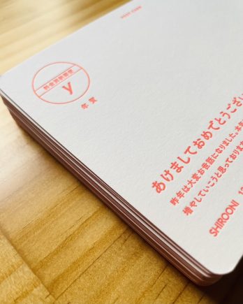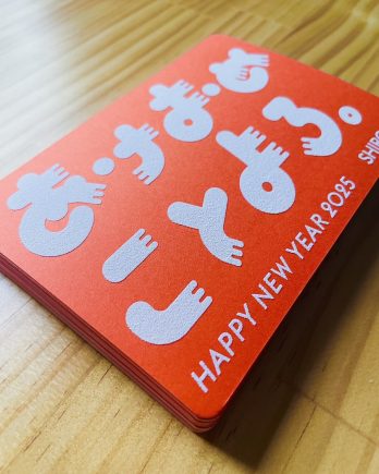 Last but not least, our craftsmanship award goes to graphic designer Yoshihiro Watanabe, whose card combines red and white double-layered paper with puffed silk screening on one side and fluorescent red letterpress on the other.