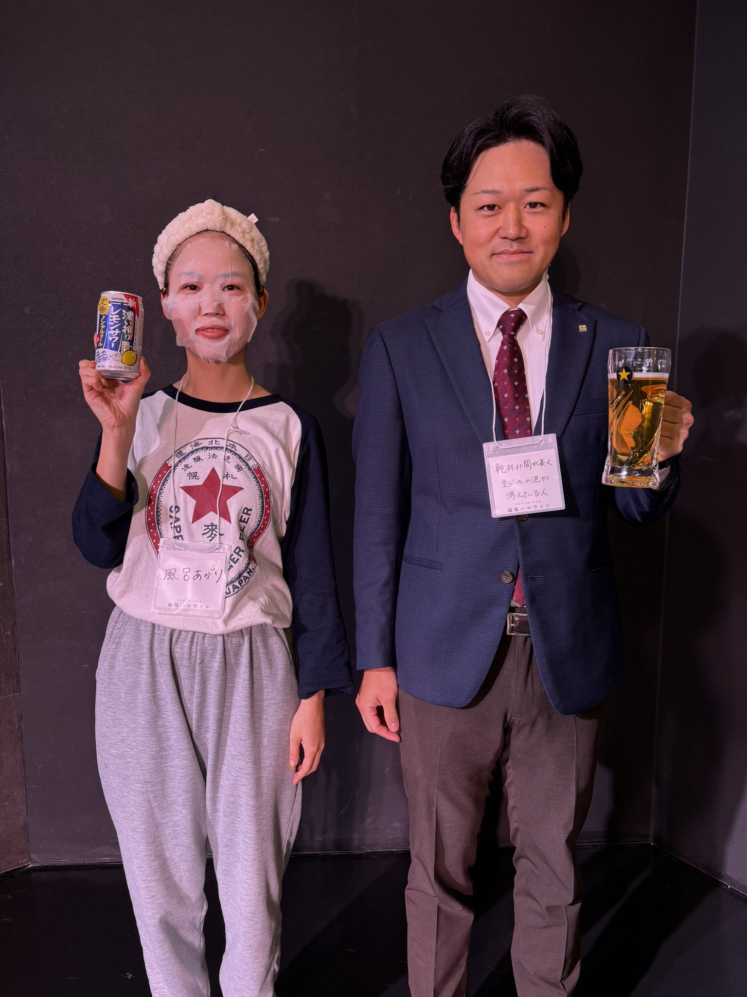 Left: person who just got out of the bath | Right: person who had to wait for a long kanpai and now their beer has lost its head | @dailyportalz