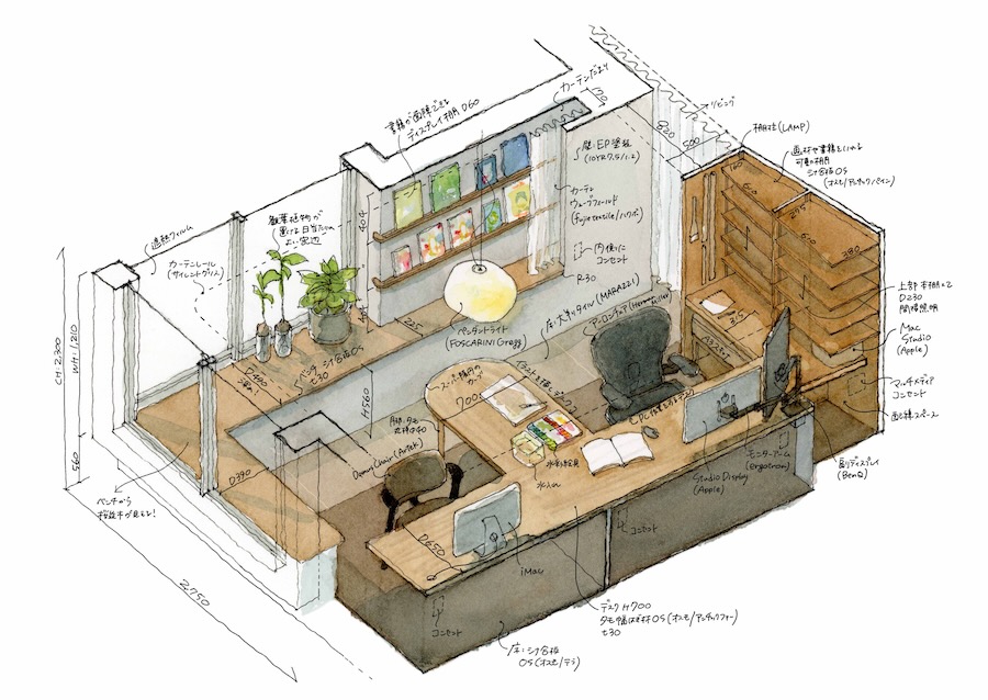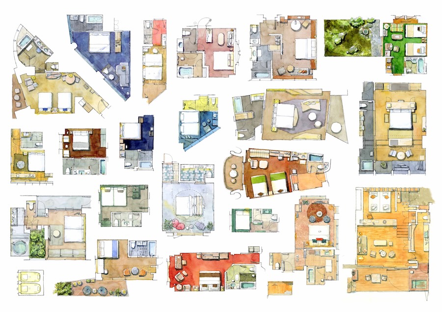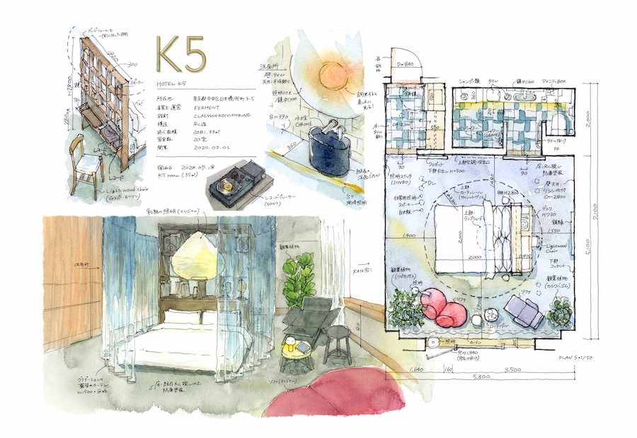 In the world of architecture, survey drawings and measurements are both basic skills, but the combination of the two are rather rare. Kei Endo’s unique cross-sections and birds-eye views of hotel rooms, amenities and desserts take the concept of architectural diagrams a step further to render a true understanding of the space around her.