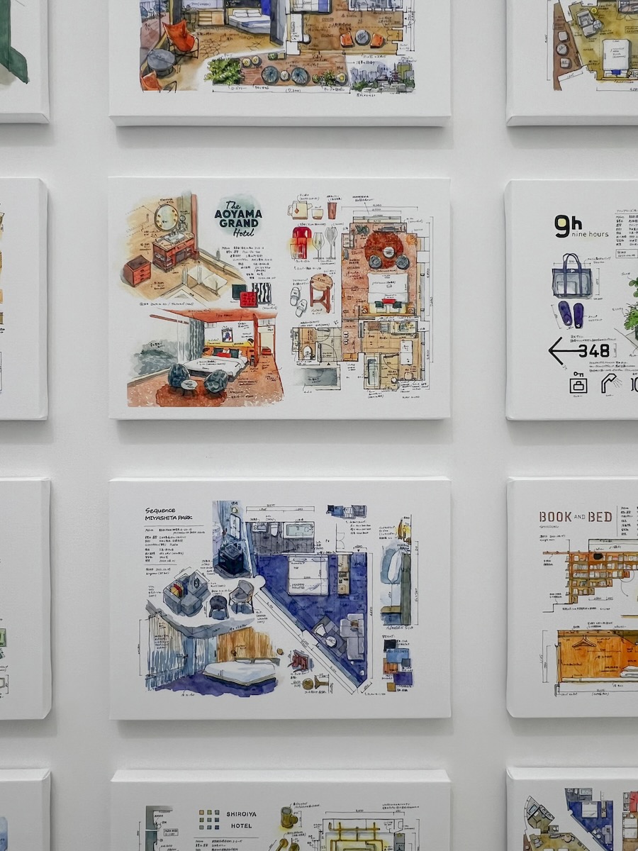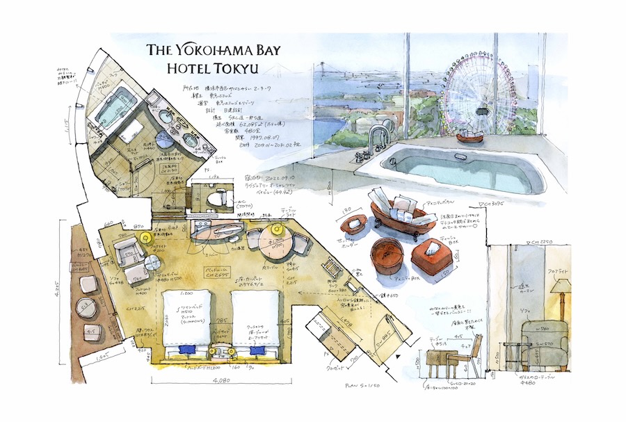 Kei Endo is an accomplished architect and draughtswoman who got her start by merging her hobbies of travelling and art: she began sharing her detailed, architectural survey drawings of the hotel rooms she stayed at. This wonderful side-hustle eventually blossomed into a career. And Endo’s repertoire expanded from hotel rooms to hotel amenities, meals, desserts and all the small delights around her. Now, for the first time, she’s staging an exhibition of old a new works.