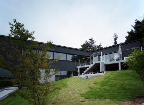 The uniqueness of the original site, which was sloped like a horse’s back and surrounded by hills, became the guiding force for the completed design. Emphasis was placed on relationship-building; namely, the dynamic relationship between the land, which appears to close in on you as you approach the site, and the structure itself.