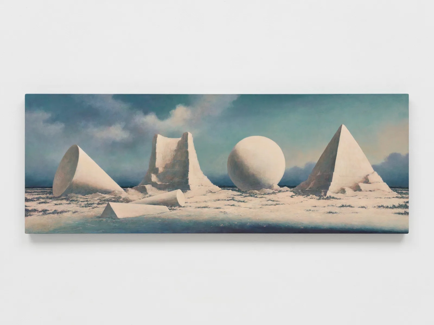 Over the past four decades, Minoru Nomata has developed a distinctive painting style characterized by imaginary architectonic and topographical forms. His works transcend specific time and place, marked by a lack of human presence. He combines the familiar with the mysterious, creating visionary paintings that are both heroic and haunting.