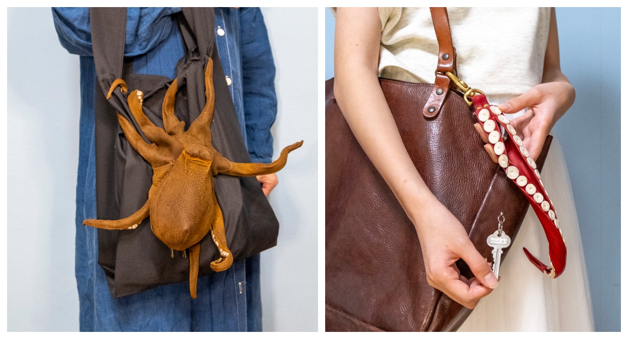 Cokeco are a Fukuoka-based design duo who create leather accessories inspired by the natural curiosities of the world around them. Lately, their attention has been focused on sealife: specifically, our multi-limbed mollusc friends whose tentacles provide endless inspiration for bags, keychains and other everyday accessories.