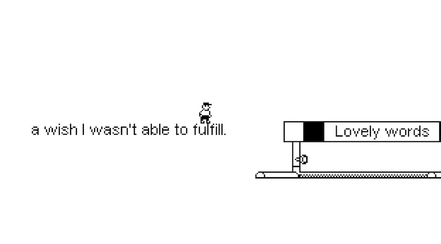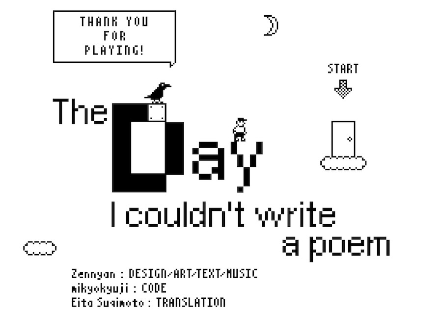 With programming help from mikyokyuji (Ryoya Usuha), the poem comes to life as an 8-bit game that follows a narrative of the inexplicable struggle of writing and sometimes being unable to express oneself through words.