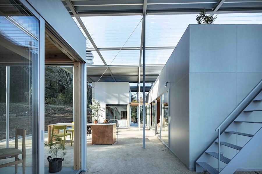 Sprawling under a single, elegant roof, multiple small structures are woven together with semi-outdoor “gardens” that breathe life between them. These spaces shift character—welcoming guests, hosting outdoor meals, or inviting children to play beneath the wide sky. At its heart, ROOF HOUSE is a living organism, flexible enough to evolve: should the owners move, parts can become shops or galleries, continuing to pulse with community life.