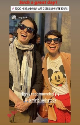 “I spent a day with Mirit Weinstock, a jewelry designer and artist who lives in Tokyo. Mirit knows the art scene in Tokyo. She gave me a private tour exploring galleries, exhibitions, and off the beaten track art spaces. A most enjoyable and inspiring day!”