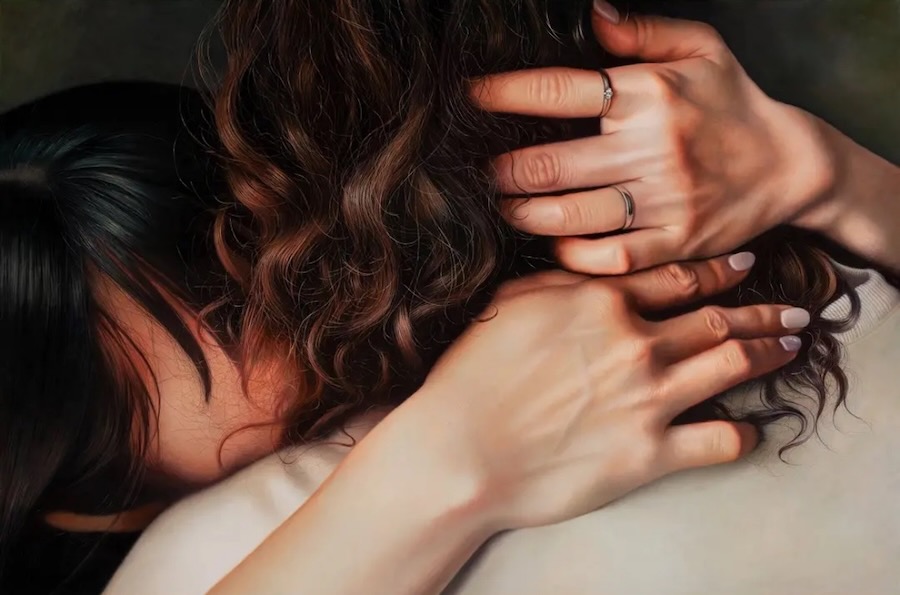 “I’m not sure if I’m jealous or just feeling lonely, but still” (2023), Oil on linen mounted on panel